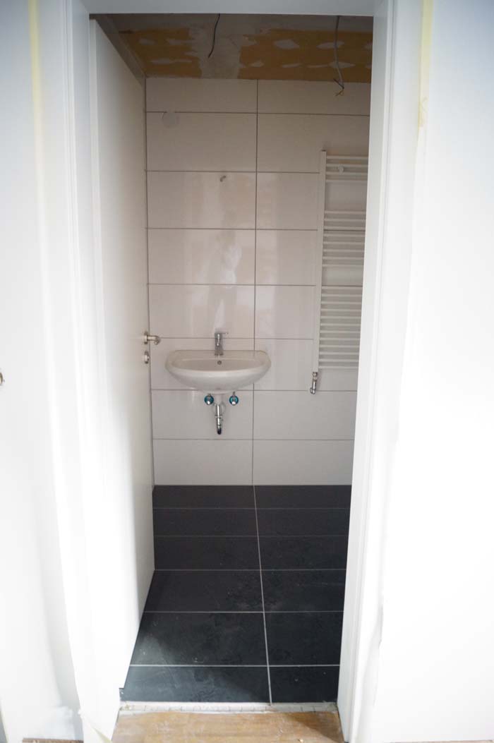 I had planned to report about the finished bathrooms much earlier - but they have been almost finished for 4 weeks now. And they will remain in this state for a little longer, since other tasks in the house are more important to ensure a smooth and efficient workflow. The ceilings still have to be done, the electrics need to be connected and accessories (mirrors, hooks) need to be fixed. This will be done by "us" or dad. It has been a little difficult to take pictures for that reason, but I guess you can get an impression of what the bathrooms will looks like. Modern, classical in a hopefully somehow timeless design.