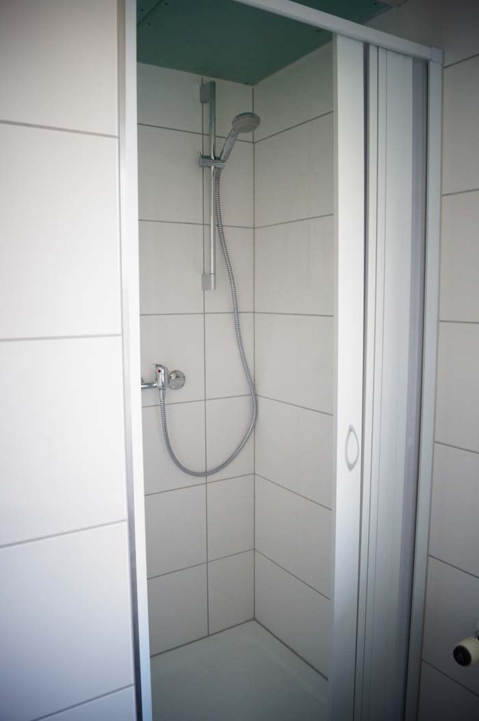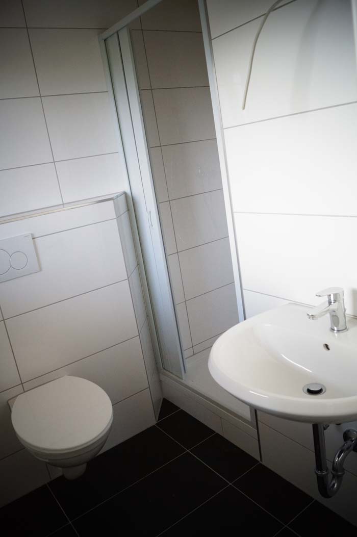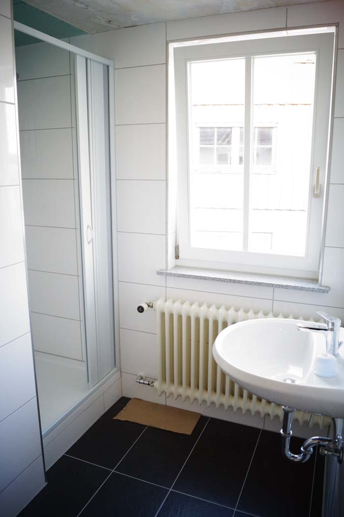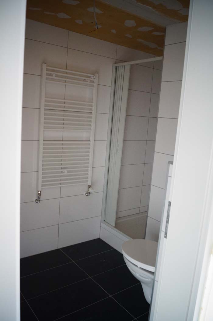 As you know, there are two floors with guestrooms in my house. On the upper floor, there will be shared bathrooms. On the floor below, there are en-suite-guestrooms. The bathrooms have been built in now (I contracted a company for this)!
