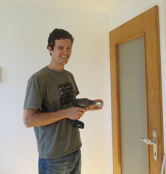 Dominique was very skillful, despite or exactly through the fact that he's not using the electric screwdriver every day. When I struggled to get the first screw in (because it was too high and I had no ladder, not because I can't handle this tool ... I need to say this after a year of renovating), he took the screwdriver over. I didn't get it back for the remaining blinds ... and we moved on fastly.