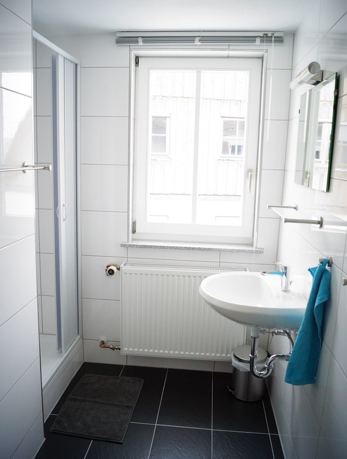 This room with a new en-suite bathroom is the smallest room on the floor. And not only because of the colours have I been unsure about it for a while: I initially wanted to put two single beds inside. But this would have made this room look too full... when the decision to make a single room and to put a 1,40m-bed inside had been taken, I started to like this room. And I further think that this has been a wise decision as I might attract some individual travellers as well. And now I have a room with and en-suite bathroom for them. And I am enthusiastic about how cozy this room has become: