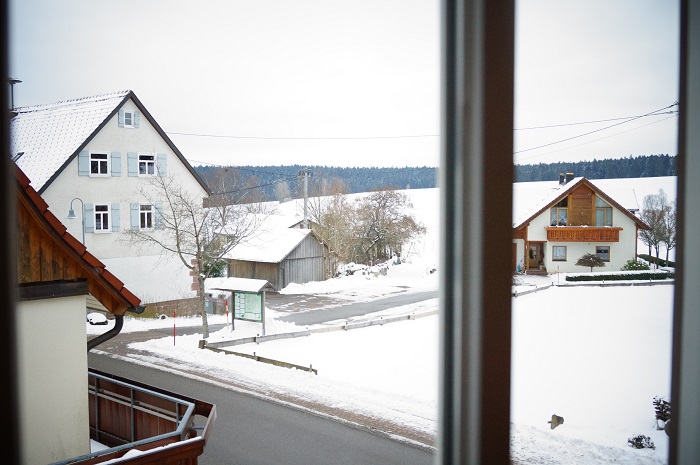 Und der Ausblick (derzeit auf die Schneelandschaft).