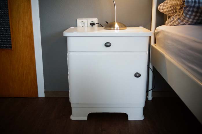 Der Schrank ist geblieben (er hat nur einen lichtgrauen Anstrich bekommen):