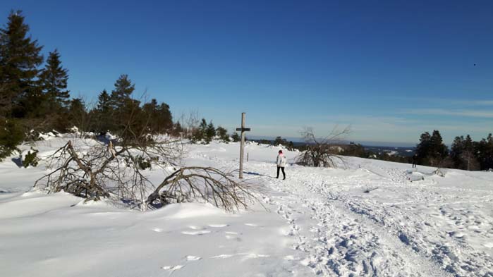 Last Tuesday, I went on a snowshoe tour with my mom - the first time for each of us. We had planned a signposted tour from the Ruhestein to the Schliffkopf. Having arrived, it once again appeared that the signposts are not always so clear. We landed on another path as the signs are the same for all snowshoe tours. We did not forcibly need the snowshoes for the whole way and took the snowshoes off for a while. But as this can be done pretty easily and as they are not too bulky to be carried around, this was not a problem. We enjoyed the wald and the views: