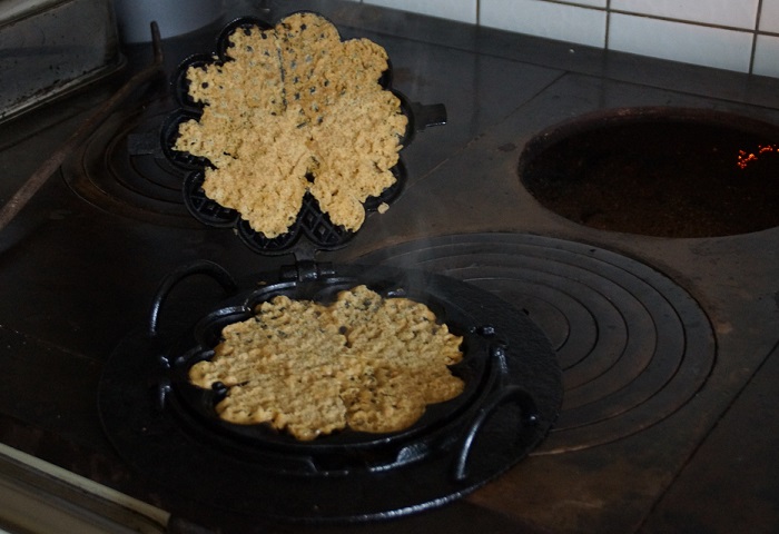 I announced as a project for 2020 to use the old kitchen oven more frequently in order to cook and bake. I already started in January with baking waffles. More than one year ago, having seen my old kitchen oven, some very nice guests gave me a cast waffle iron for a wooden stove. The waffle iron looks like this: