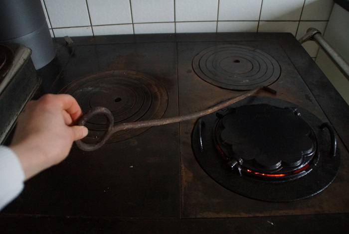 Bevor man es auf dem Herd platziert, muss man die Ofenringe entfernen. Anschließend kann das Waffeleisen auf den Herd setzen.