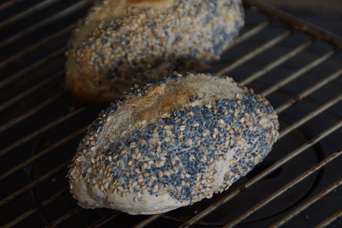 Breadrolls turned out well, too. I let them bake for half an hour in total. I turned them after 20 minutes to get the other side more crustily, too.