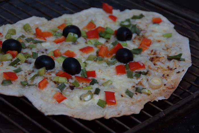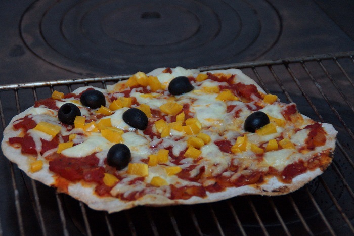 And I baked wood stove pizza. With the typical wood stove pizza base ... of course, I made the tomatoe sauce on the old stove as well.