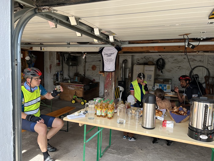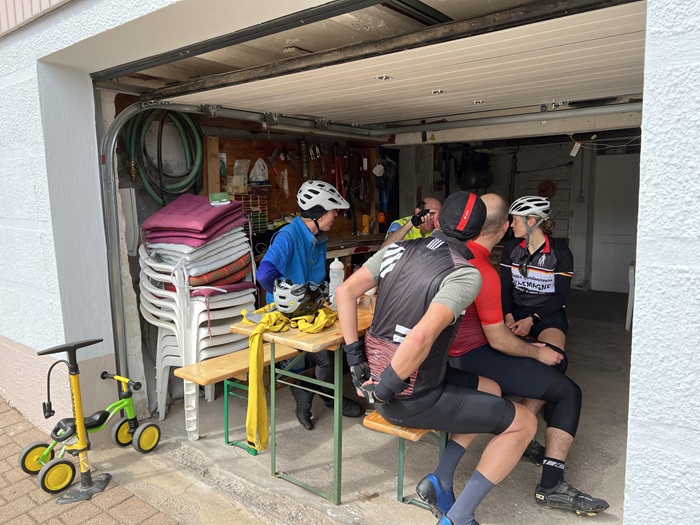 Vor gut einer Woche wurde die Garage der Black Forest Lodge für ein paar Stunden zur Verpflegungsstation für Radfahrer auf der Durchreise. Der Anlass: Es fand die Nordschwarzwald-Brevet statt. Also eine Tour, bei der trainierte Rennradfahrer 300 km am Stück fahren. Start und Ziel war in Freiburg ... und die Strecke führte direkt an der Black Forest Lodge vorbei. Mein Vater war einer der Radfahrer, und so lag es nahe, dass wir die Garage der Lodge für die Radfahrer öffnen und diesen eine kleine Stärkung anbieten.