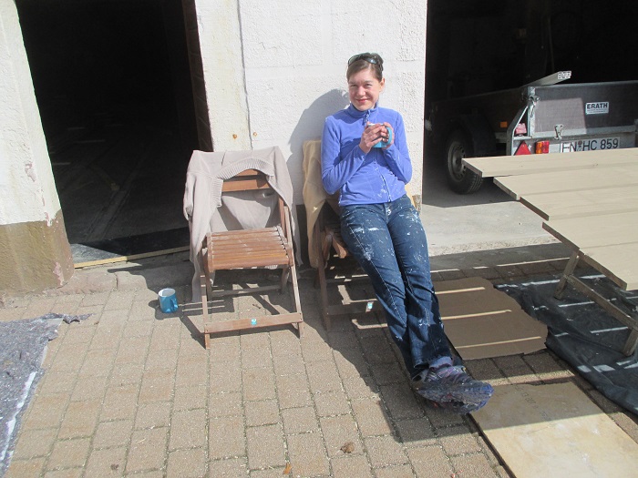 Last Saturday, the wooden blanks (from Black Forest fir) for the sheating of the frontside of the house at the gable have been delivered, as well as the new blanks for all the balconies. I have started to paint them in perfect weather conditions. I couldn't have wished for a nicer beginning of spring! I really enjoyed this so much to be able to just spend a few hours in a row painting in the sun.