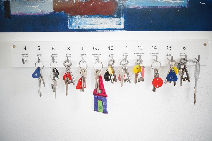 Immer wenn Besuch da war, habe ich einige Dinge im Kopf, die ich von nun an besser machen kann. Z.B. stellte sich heraus, dass ich einen Überblick über die Zimmerschlüssel brauche, nachdem einer verloren ging. Also habe ich ein individuelles Schlüsselbrett gebastelt.