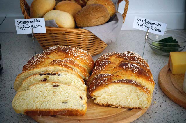 Und DER Klassiker schlechthin ist der Hefezopf geworden, den ich frisch backe, sobald ein Grüppchen zum Frühstück kommt.