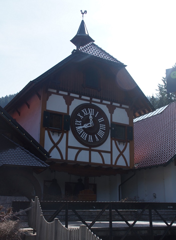 On the way, you pass by the Hornberger Uhrenspiele - a cuckoo clock built into a big wall where you can watch and hear the clock playing. Further, you get the chance to buy a handmade clock. And very close to Triberg, you can admire the biggest cuckoo clock in the world. And buy more souvenirs, of course. There it is: