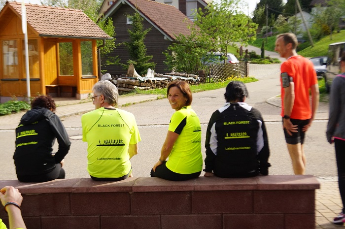 On Saturday evening, there was another highlight: the Laktatvernichter joined and we first went for a short and slow run together. The following picture is very special to me: about one year ago, when we renovated the entrance area, we already pictured runners sitting on the wall before starting a run together. It's so great to see some dreams become reality.