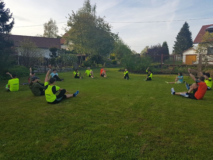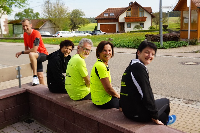 Eine Gruppe von Leuten, die sich nach dem Lauf im Garten zum Stretching in den Kreis setzt ist ein ähnlich schönes Bild wie die Läufer, die sich auf der Mauer vor dem Haus einfinden: