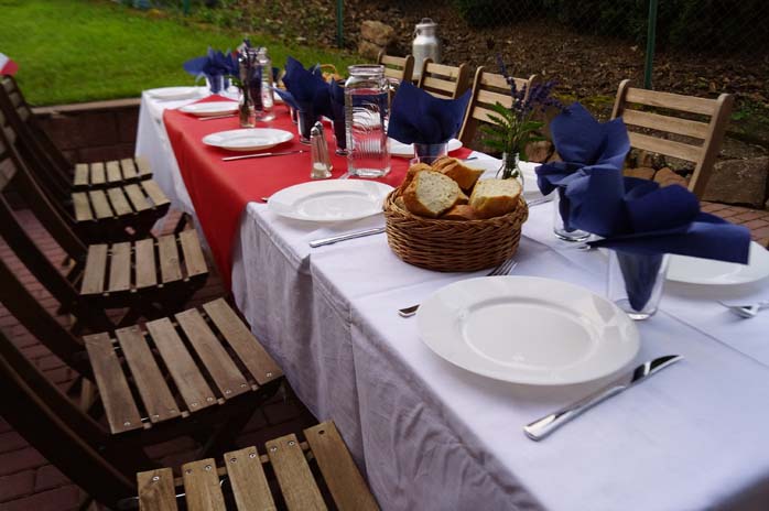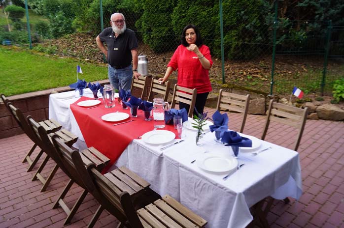 Généralement, je suis aussi ouverte pour d'autres soirées thématiques, comme une soirée ou plutôt un après-midi anglaise ... mais come je reçois beaucoup de réservations des Espagnols pour l'instant, je me réjouis d'abord de quelques soirées espagnols informels cet été.