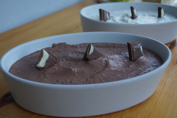 Et les desserts. Un autre classique: la mousse au chocolat noire et blanche.