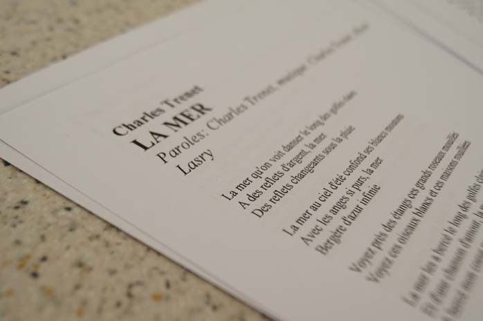 Après avoir mangé et parlé (en plusieures langues avec le public international, mais on pouvait entendre pas mal de français), on s'est consacré à la partie culturelle. Nous nous sommes assis dans "la lounge" et avons écouté et même chanté quelques chansons. "La mer" de Charles Trenet, "Ma solitude" et "Ma liberté" de Serge Reggiani et "Nathalie" de Gilbert Bécaud.