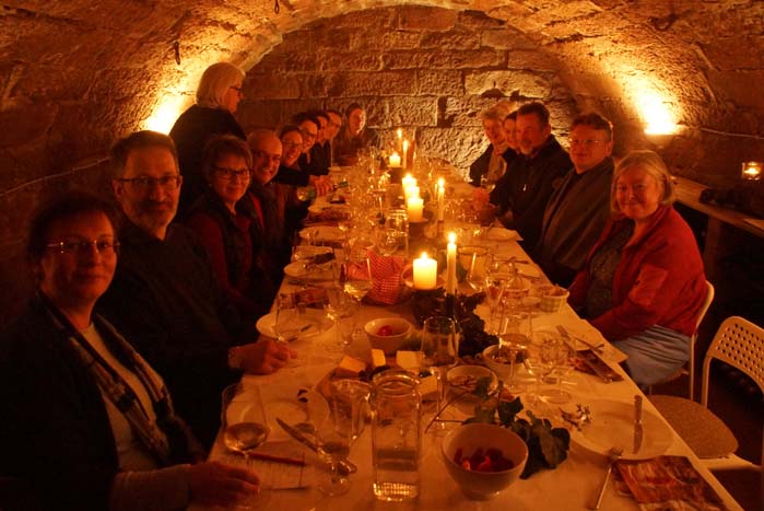 Und so gemütlich kann der Weinkeller aussehen, nachdem Marion ihn dekoriert hat. Wir haben den Weinkeller Ende Februar mit einem Weinabend gebührend eingeweiht. Es war ein sehr schöner Abend!