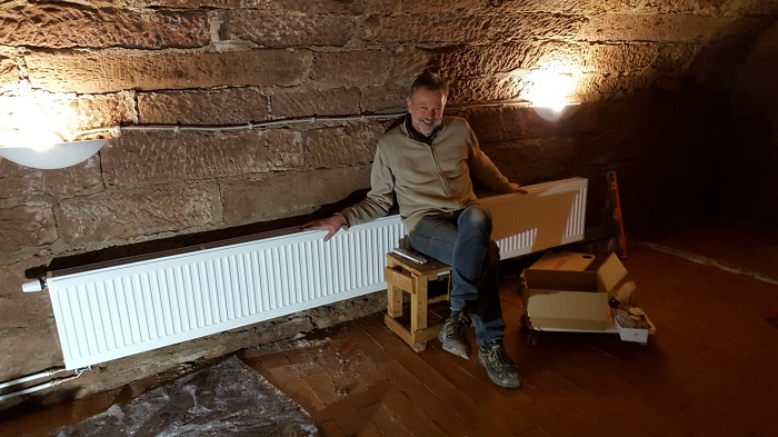 Zum Schluss noch die Heizung. Sie macht den Raum zwar nicht schöner, aber den Aufenthalt darin um einiges angenehmer.